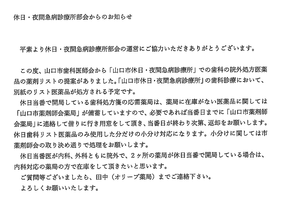 休日診療の処方薬について(再掲)