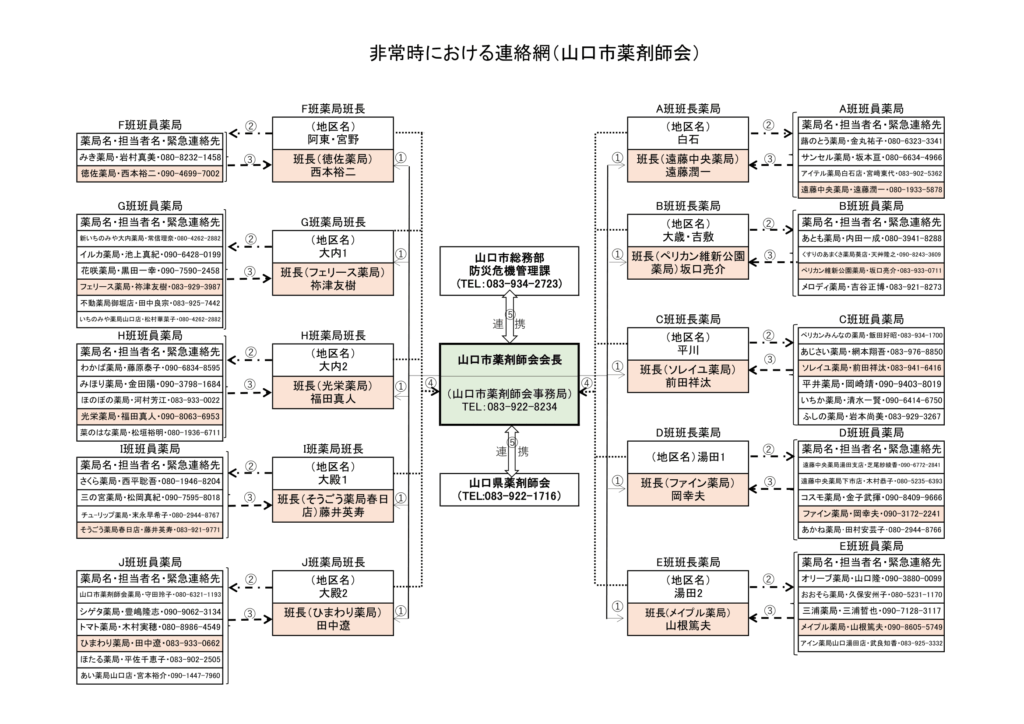 非常時における連絡網(山口市薬剤師会)